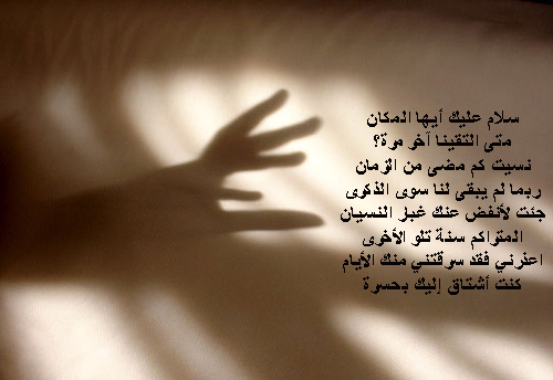 المشاركة الأصلية كتبت بواسطة sezeef مشاهدة المشاركةاطال الله عمر المكان وعمركيكفيني عمر بعمر المكان ... ...