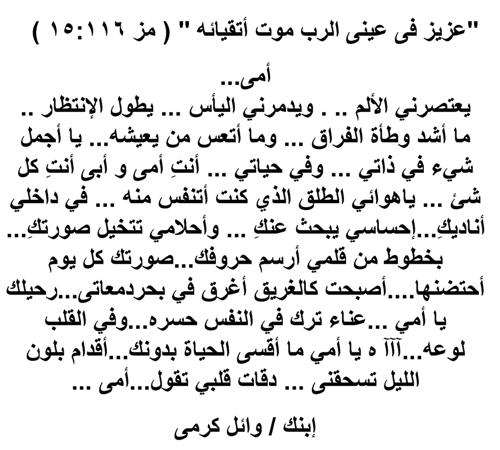 أمى ... ( كلمات الشاعر و الروائى / وائل كرمى )
