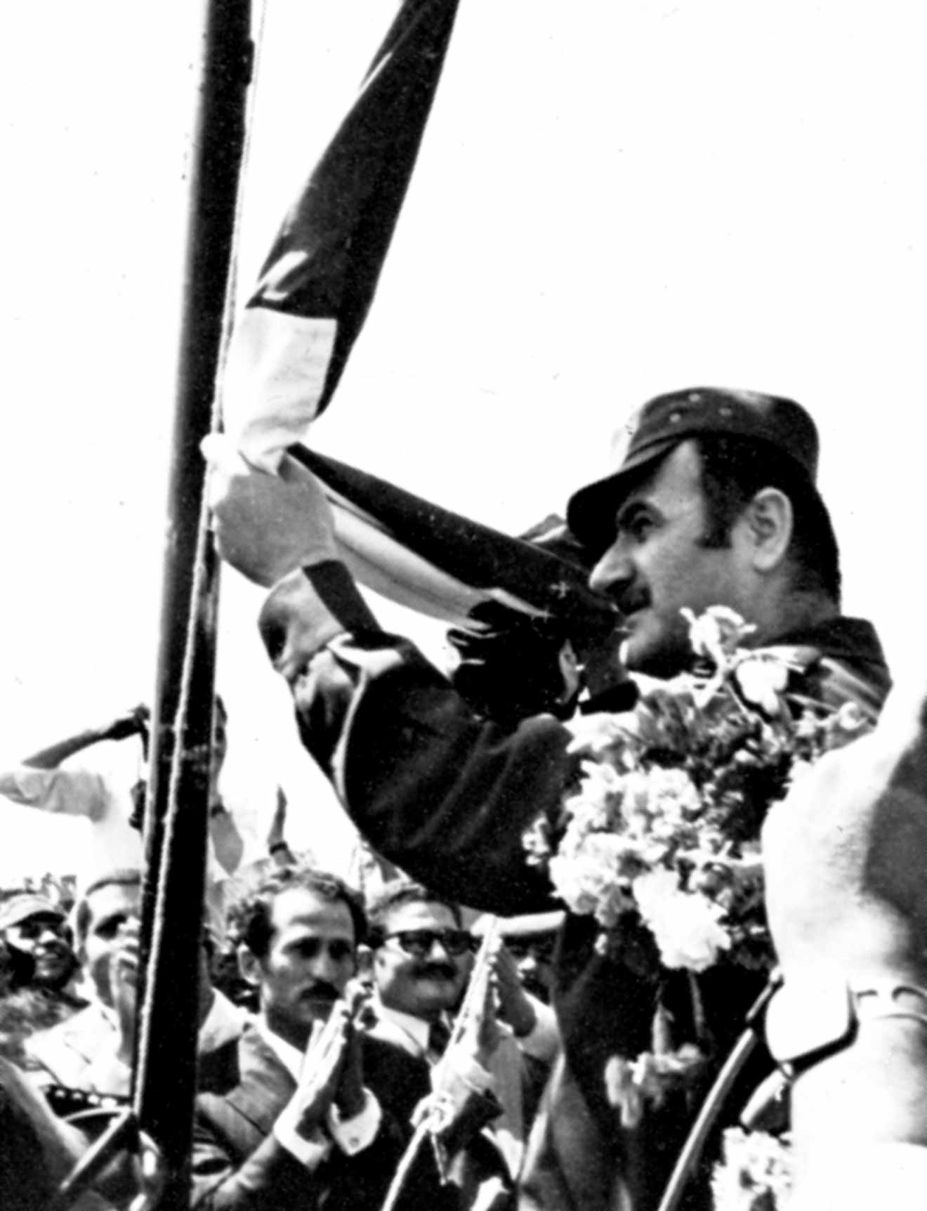 حافظ الأسد، رئيس الجمهورية العربية السورية، والأمين العام لحزب البعث العربي الاشتراكي منذ عام 1971. مناضلٌ صلب، ورجل دولةٍ بارز، وسياسيٌّ محنّك، وعسكريٌّ خبير، واستراتيجيٌّ وتكتيكيٌّ بارع. قاد الحركة التصحيحية في الحزب والدولة ليرسي في تاريخ سورية الحديث دعائم عهد من الاستقرار والنهضة السياسية، والاقتصادية، والاجتماعية، والثقافية بعد أن كانت الفوضى والانقلابات العسكرية تعصف بالبلاد منذ استقلالها في عام 1945م.