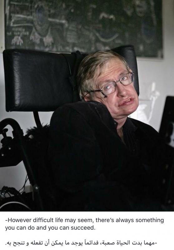 هو كان مقاطع "إسرائيل" أكاديمياً وعامل حملة توعية وتبرعات لأطفال سوريا، و شارك في مظاهرات ضد حرب العراق الي حكا انها "جريمة" وبنيت على أكاذيب... وبعدني بقرأ أكثر وبحترمه أكثر وبحزن أكثر على رحيل شخص عظيم متله...طبعاً غير انجازاته العلمية