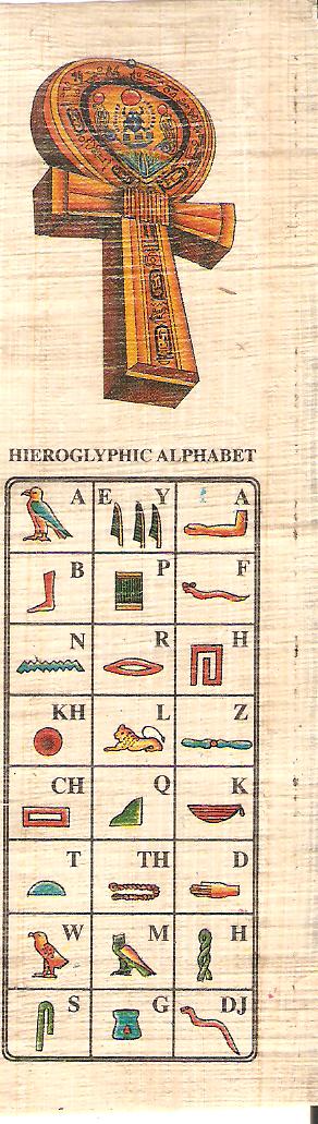 صورة تقارن الكتابة الهيروغريفية بالأحرف الإنكليزية