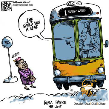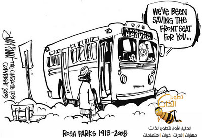 وبهدوء اتجه رجل ابيض إلى حيث تجلس (روزا) منتظرا أن تفسح له المجال ، لكنها ويا للعجب !!