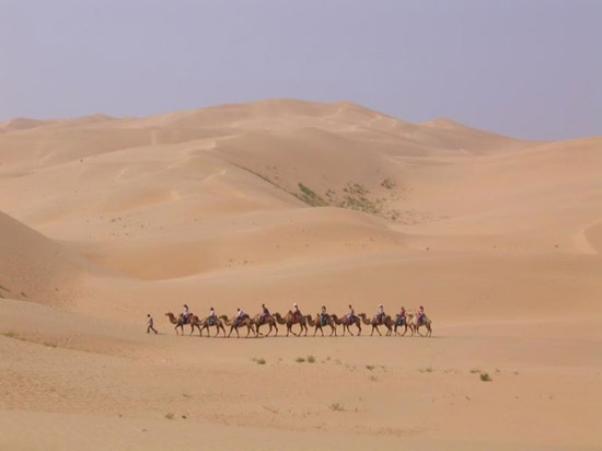 ورغم قسوة البيئة واختفاء مظاهر الحياة في تلك الصحراء المترامية الأطراف كان رعاة الإبل والماشية من المغول يسكنون فيها لعدة قرون