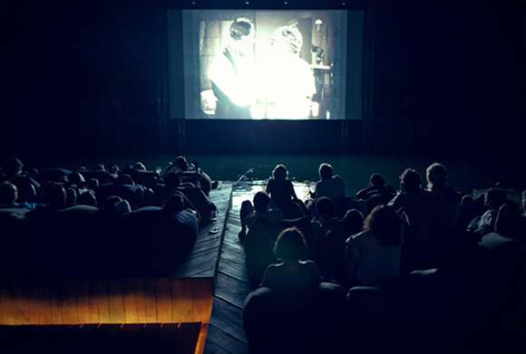 تقوم القوارب بنقل المشاهدين إلى مكان السينما عند موعد العرض ليستمتعوا بتجربة فريدة، فيجلس المشاهدون على مسرح يطفو فوق الماء لمشاهدة شاشة عرض طافية!