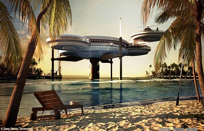 إليك Water Discus Hotel «فندق قرص الماء» (لا يعرف ما إن كان الاسم العربي المحلي سيكون مختلفًا). وقد صُمم هذا الصرح العجيب على شكل يوحي بسفينة فضائية خيالية أو، كما قالت هذه الصحافة، مخبأ الشرير في أفلام العميل جيمس بوند «007». وليس هذا وحسب، بل إنه سيكون الأول في سلسلة من الفنادق المشابهة ستشهدها المنطقة في السنوات المقبلة.
