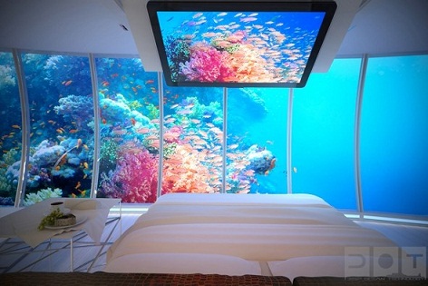 سيضاء العالم "تحت الماء" حول الفندق بمصابيح خاصة، مع توظيف تكنولوجيا التصوير الدقيق، التي تتيح للشخص تقريب ما يريد التمعن فيه على شاشة عالية الوضوح، بما في ذلك أصغر التفاصيل التي يمكن أن تغيب عن العين المجردة.