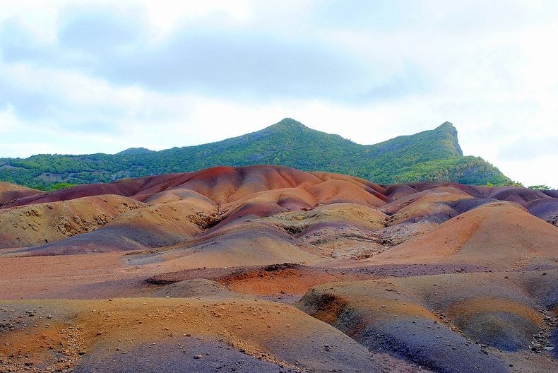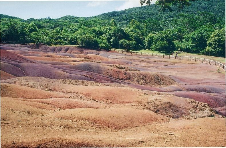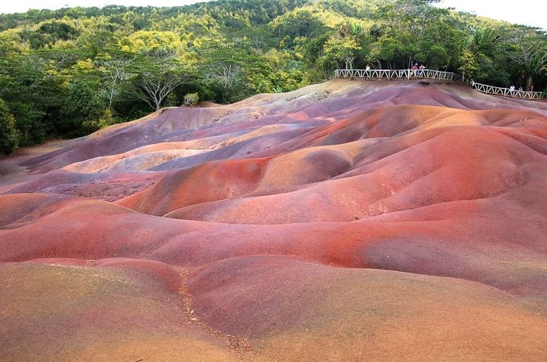ميزة أخرى مثيرة للاهتمام في أرض تشاماريل الملونة هي الكثبان الرملية التي لا ينخفض حجمها رغم أمطار موريشيوس، الاستوائية الغزيرة.