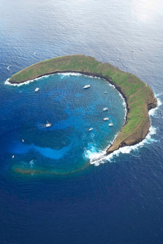 مولوكيني جزيرة صغيرة مذهلة على شكل هلال تقع بين جزيرتي Maui و Kaho,olawe في هاواي ، تعد هذه الجزيرة واحدة من أجمل جزر المنطقة ، حيث ويقدرعمرها حوالي 15.000 سنة ، تشكلت نتيجة بركان حدث في تلك المنطقة في ذلك الوقت . في هذا الهلال الرائع تم العثور على أكثر من 250 نوعا من الأسماك و 38 نوعا من الشعاب المرجانية