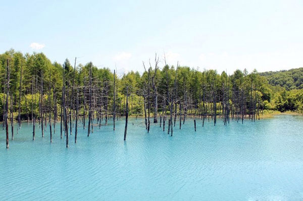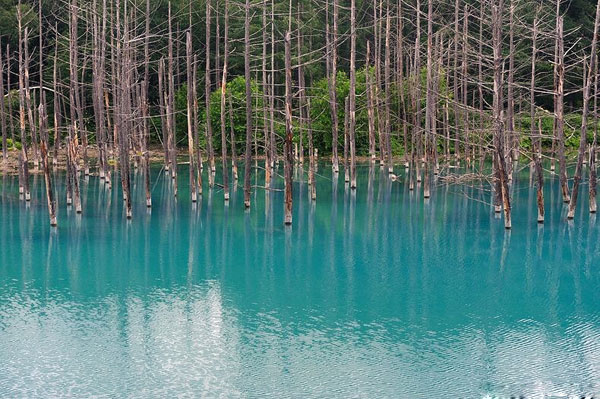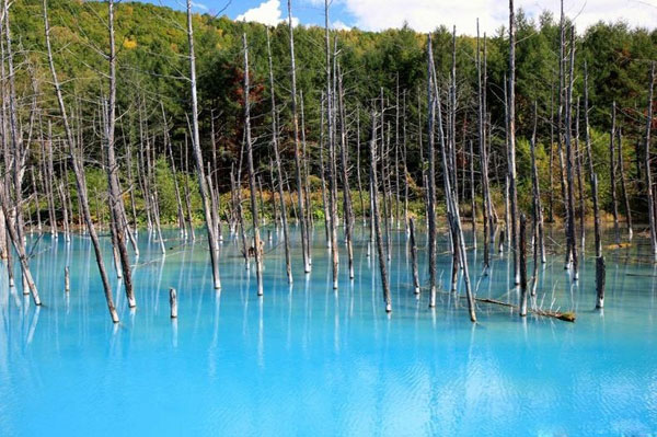 في الجنوب الشرقي من قرية بيي-Biei في هوكايدو باليابان، وبالأخص على الضفة الشمالية من نهر بيجاوا يقع المستنقع الأزرق الذي يعتبر واحد من أهم المقاصد السياحية باليابان، وهو يبعد حوالي 2.5 كيلو من الينابيع الساخنة البلاتينية عند سفح جبل هوكايدو. وسمي المستنقع بهذا الأسم لو بوند أي المستنقع الأزرق، نظراُ للونه الغير طبيعي الأزرق اللامع النابع من المياه، مع الأشجار التي تنبت من قاع المياه. وعمر هذا المستنقع أو البركة ليس بطويل، حيث يرجع تاريخ إنشاءه مع إنشاء خزان لحماية المنطقة من تدفقات البركان الطينية التي قد تحدث عند ثورانه في الجبل القريب من هذه المنطقة عقب أحداث إندلاعه في ديسمبر 1988، ولذلك قرر مكتب هوكايدو للتنمية اللإقليمي بإنشاء هذا السد لحماية نهر بيجاوا من السيول الطينية البركانية، وحبست المياه من قبل السد وظلت تزداد شيئاً فشيئاً مكونةً هذه البركة ذات الشكل الأزرق اللامع المبهر.