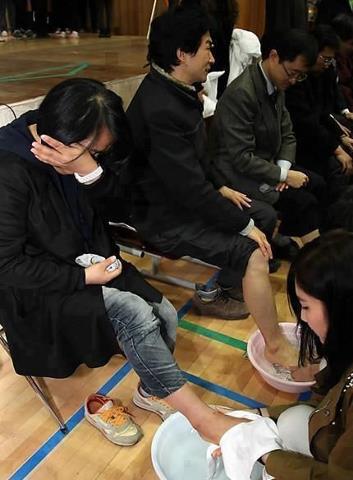 هو حفل تخرج باليابان حبث يقوم الطلبه بغسل ارجل معلميهم تكريما لهم على محهوداتهم وتقديرا واحتراما...وتظهر في الصورة معلمة متاثرة جدا بالموقف.