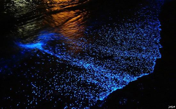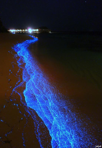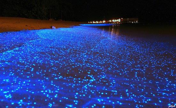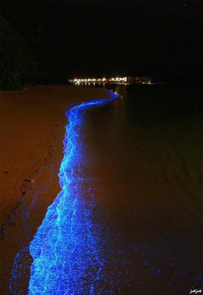 سماء ليلية وكائنات كالنجوم اللامعة في شواطئ جزر المالديف