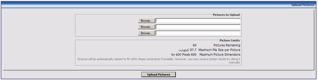 و منختار الصور عن طريق الضغط على زر " browse " و بعد ما نختار الصور منكبس على " upload pictuers "