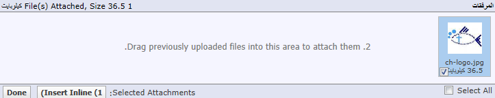 7- وبس ليخلص رفع ... رح يطلع عنا بآخر النافذة صور مصغرة للمرفقات يللي قمنا برفعها ...