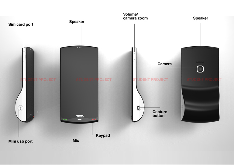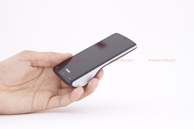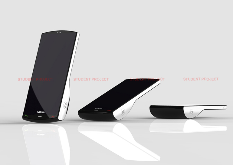 فكرة غريبة جداً ومبتكرة لأحد هواتف نوكيا التي تحوي منظومة كهرومغناطيسية تقوم بتحويل ثِقل ووزن الهاتف من وإلى الجزء المنحني منه، ليستطيع الهاتف الوقوف بتركز وزنه في الأسفل حين تأتي مكالمة!! وإذا لم ترد استقبال تلك المكالمة كل ما عليك فعله هو الطرق على الهاتف بإصبعك ليعود للنوم مجدداً!