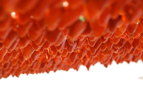 المميز في أعمال كلير (بجانب الفكرة نفسها) هو استخدامها لعناصر طبيعية مثل فاكهة حقيقية وريش حقيقي لتضفي مزيداً من الواقعية حين تقف بجانب هذه الأعمال لتشم رائحة الفراولة أو الريش!!