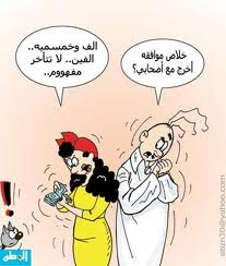يلي بيخاف من زوجته يروح يقعد على اليسار , كلهم راحوا للجهة اليسار إلا واحد, قالوا له ما بتخاف منها؟