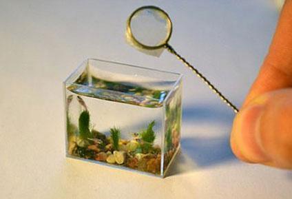 أنشأ أناتولي كونينكو أخصائي المنمنمات، من مدينة أومسك السيبيرية، أصغر حوض سمك في العالم.