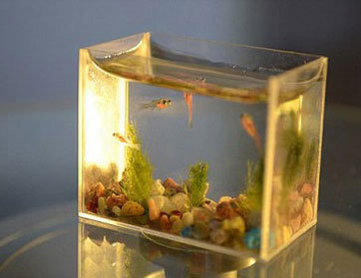 حتى أن حوض السمك الصغير مجهز بفلتر لتنقية المياه لإبقاء المياه صحية للأسماك.