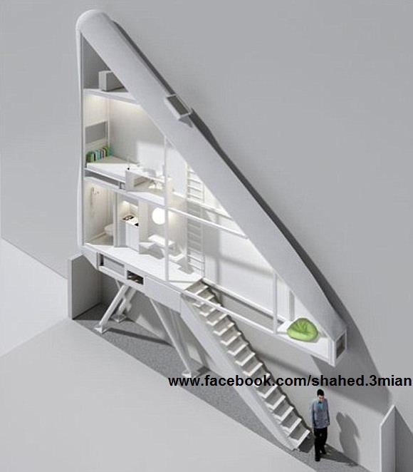 وعلى الرغم من مساحته الضيقة جداً فإنه يحتوي على غرفة نوم