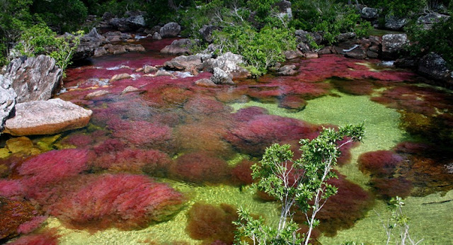 نهر كانو كرستيال و بالإنجليزية و Cano Cristales يقع هذا النهر في كولومبيا و يدعى هذا النهر أيضا بأسم نهر الألوان الخمسة أو النهر الأكثر جمالا في العالم ، الغريب في هذا النهر إنه طيلة أيام السنة يكون نهر عادي كغيرة من الأنهار الأخرى ولا يجذب الأنتباه ولا يلتفت إليه احد . لكن في أحد أشهر السنه تبدأ هذه الألوان الخلابه بالظهور على سطح البحر لتعطية روعة وجمال في المنظر .