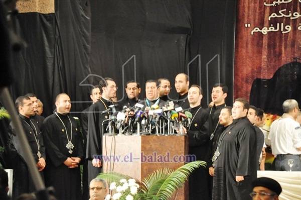 وبدأ الانبا باخوميوس حديثه قبل اعلان النتيجة قائلا: "إن كان الرب قد سمح لنا أن نتولى هذه المهمة المملوءة بالحقيقة سرا فنحن كجنود نتوجه بالشكر للكنيسة ولكم جميعا علي مشاعركم وصلواتكم التي صنعتنا وأتت بنا إلي هذا اليوم التاريخي فصرنا فرحين لقد نظر الرب لدموعكم وصدق محبتكم وقبل صلواتكم وتنهداتكم وأراد تحفيف آلامكم فأتي بنا لهذا اليوم المبارك" موضحاً أن