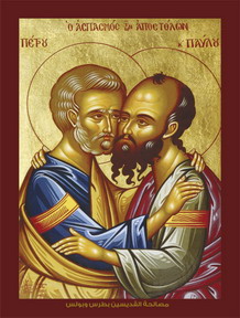 تأتي الذكرى السنوية لعيد القديسين بطرس وبولس في 29 حزيران، وتعتبر حدثاً مهماً في الكنيسة وخاصة لبطريركية إنطاكية وسائر المشرق التي يعتبر بطريركها خليفة في كرسيه للرسولين العظيمين اللذين يعتبران بحق هامتي الرسل ومؤسسي الكنيسة. نبدأ بلفت النظر إلى أن معظم تذكارات القديسين مخصصة لكل منهم إفرادبا (القديس نيقولاوس،ديمتريوس... الخ). هذه الذكرى تجمع القديسين في نهار واحد وللأمر مغزى كبير وعبرة. لقد كان الرجلان مختلفين في كثير من الأمور، فبولس كان ذا ثقافة عالية، وخاصة في مجال الشريعة بينما كان بطرس شبه أمي يزاول مهنة صيد السمك. وكان بولس من عائلة ذات نسب رفيع بينما أتى بطرس من عائلة متواضعة الأول كان روماني الجنسية، بينما كلن الثاني يهودياً بسيطاً. إلا أن ما يجمع هذين العظيمين هو اندفاعهما العظيم وغيرتهما وتحملهما المشاق في سبيل البشارة، ومحبتهما خاصة لبعضهما البعض، واستشهادهما في سبيل إيمانها. لذا قليلاً ما نراهما إفرادياً في أيقونات مخصصة لكل منهما وغالباً نراهما إما في عناق محب أو يحملان مجسماً يمثل الكنيسة .