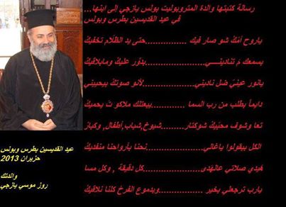 وبمناسبة تذكار القديسين بطرس وبولس ... كتبت والدة المطران المخطوف بولس يازجي رسالة بمناسبة تذكار شفيع المطران" القديس بولس"