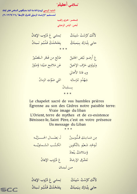 النّشيد الرّسمي لزيارة قداسة البابا بنديكتوس السادس عشر لبنان