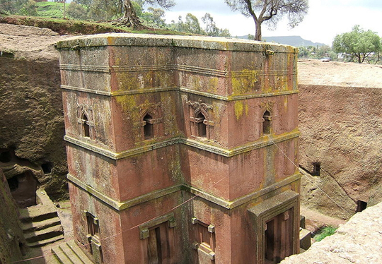 فمنذ أول شخص أوروبي وصفها بأنها "القدس الجديدة" "Golgotha الجديدة" و "قلعة المسيحية في جبال اثيوبيا والتي ييقطنها سكان بلدة دير Roha - Lalibela في Lasta مقاطعة Wollo والتي كانت المساكن فييها عبارة عن أكواخ دائرية بطوابق جافة و غير قادرة على الاعتقاد بأن الكنائس الصخرية تماما من صنع الرجل و ينسبونها إنشائها الى ملك من آخر ملوك سلالة Zagwe Lalibela الذي حكم نحو 1200 ميلادي ومع هذه الكنيسة الاثيوبية والتي روي عنها انه عندما تم انشائها كانت الملائكة قد عملت جنبا الى جنب مع عمال البناء الحجرية وخلال أربع وعشرين سنة من العمل كله ...