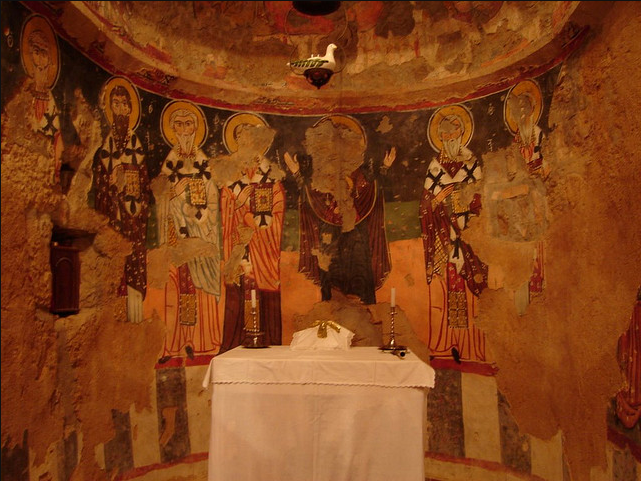 اما بالنسبة للطبقة التالتة فيعود تاريخها الى القرن الثالث عشر ومنلاقي كتابات باللغة العربية كتبت في عام 1504 يوناني يعني في 1216 ميلادي بتنص : عمر سركيس ابن القس رحمه الله الموضع المبارك امين .
