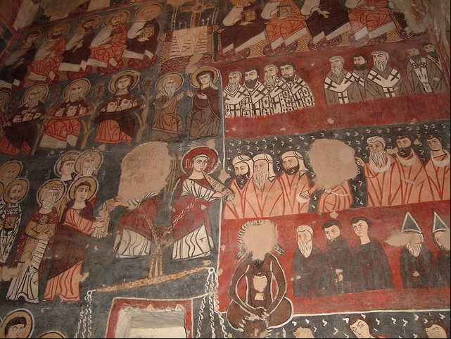 الخلاصة : تزين حوائط كنيسة مار موسى الحبشي صور و جداريات ذات المعنى اللاهوتي الواضح منها مثلاً صورة الشارة التي يظهر فيها شروق الشمس المشير على أن المسيح ، شمس البر . كما نجد رسماً للرب يسوع المسيح الضابط الكل ، وصور الرسل منهم بطرس وبولس وصورة الانجيليين الاربعة متى ، مرقس ، يوحنا ، لوقا .