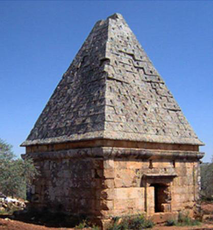 القبر الهرمي عبارة عن برج اسطواني يرتفع فوققاعدة ذات شكل تكعيبي بينـما يكون المنـــــظر العلوي للبناء على شكل هرمي ويتكونأسفل البناء من حجرتين الأولى تكون على شكل حجرة ذات أخاديد تصل فيها النواويسوالثانية صممت لتكون قبرا للشخصية مؤسس الضريح وبذلك تحتوي على سطح مرتفع في مركزهبمعنى أنه عندما كان هناك تواصل بين المصريين والساحل السوري وخاصـــــة في عهدرمسيس الثاني في الألف الثاني قبل الميلاد نتيجة احتلال القوات المصرية لها فليسمستبعدا أن الفراعنة قد أخـــــــــذوا من تلك القبور الهرمية لتكون شكلا لإهراماتهمولكن بشكل أكبر والاختلاف بينهما أنه في مصر الأمر مقتصر على الأبنية الضخمةالهرمية المخصصة للفراعنة وأما بقية القوم فقبورهم عادية جدا وفي بلادنا هناكجمالية في الأبنية الجنائزية شملت كل شرائح المجتمع.