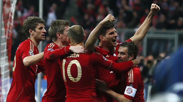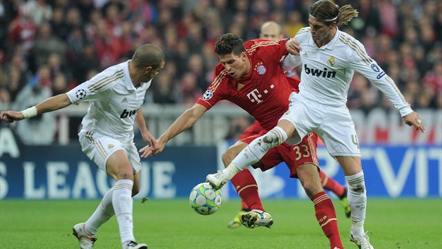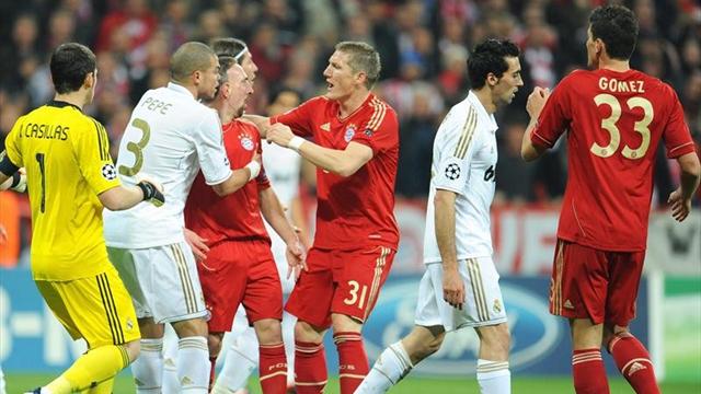 الأهداف: ريبيري (17) غوميز (90) بايرن ميونيخ، أوزيل (53) ريال مدريد.ميونيخ- سيسافر بايرن ميونيخ الألماني إلى ملعب "سانتياغو برنابيو" مع أفضلية هدف واحد بعد تغلبه على ضيفه ريال مدريد الإسباني 2-1 الثلاثاء على "اليانز ارينا" في ذهاب الدور نصف النهائي من مسابقة دوري أبطال أوروبا لكرة القدم.ويدين النادي البافاري بهذه الأفضلية إلى ماريو غوميز الذي سجل هدف الفوز في الدقيقة الأخيرة من اللقاء، وذلك بعد أن افتتح زميله الفرنسي فرانك ريبيري التسجيل في الدقيقة 17 قبل أن يدرك الألماني مسعود اوزيل التعادل في الدقيقة 53.وتقام مباراة الإياب الأربعاء المقبل في مدريد حيث سيكون الفوز بنتيجة 1-صفر كافيا لريال من اجل بلوغ النهائي للمرة الثالثة عشرة في تاريخه المتوج بتسعة ألقاب حتى الآن، آخرها يعود إلى 2002.ويسعى ريال لكي يحقق ثأره من بايرن الذي كان تفوق على النادي الملكي في آخر مواجهة بينهما في الدور الثاني لنسخة موسم 2006-2007 حين فاز الأول ذهابا على أرضه 3-2 قبل أن يخسر إيابا في ميونيخ 1-2، فتأهل بايرن بسبب أفضلية الأهداف التي سجلها في "سانتياغو برنابيو".وبدأ بايرن الساعي إلى الثأر من مدرب ريال البرتغالي جوزيه مورينيو الذي حرمه من اللقب عام 2010 بقيادته انتر ميلان الايطالي للفوز في النهائي على النادي البافاري بقيادة المدرب الهولندي لويس فان غال (2-صفر)، اللقاء بإشراك الثلاثي ريبيري وغوميز ولاعب ريال السابق الهولندي اريين روبن منذ البداية بعد أن أراحهم يوب في مباراة السبت الماضي أمام ماينتس (1-1) في الدوري المحلي.كما لعب باستيان شفاينشتايغر في خط الوسط إلى جانب البرازيلي لويز غوستافو بعد أن غاب عن لقاء مرسيليا الفرنسي بسبب الإيقاف، فيما جلس توماس مولر على مقاعد الاحتياط.
