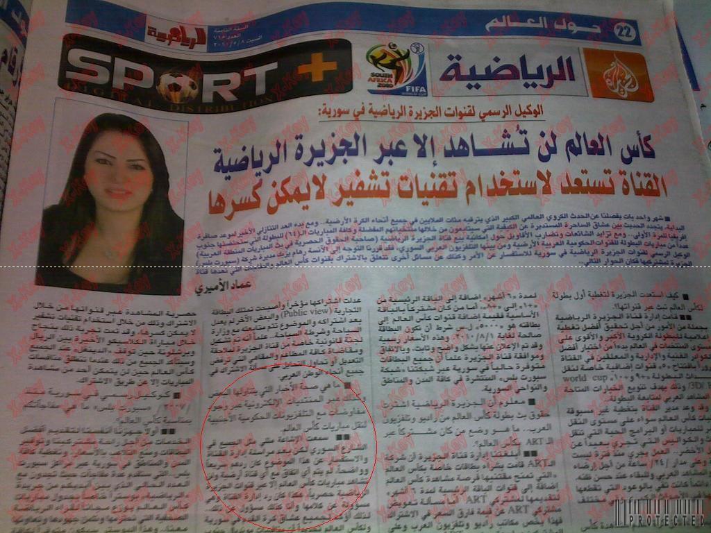 أكدت شبكة الجزيرة وعبر وكيلها الرسمي في سوريا ان مشاهدة كأس العالم ستتم عبر قنواتها حصريا