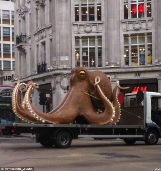 ففى أغرب أنواع الدعاية لمباريات كأس العالم على الإطلاق طافت سيارة نقل كبيرة تحمل على متنها شكل مجسم لأخطبوط كبير فى شوارع اكسفودر بانجلترا، مما سبب الذعر والهلع بين المارة فى الشوارع.