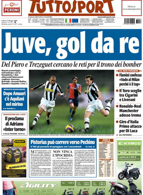 صرح نجم نادي يوفينتوس اليكس ديل بيرو بعد لقاء سمبدوريا الذي إنتهى بالتعادل 3 - 3 بأنه وفريقه يتطلعون إلى الموسم القادمل ، علمآ بأن ديل بيرو قد أحرز هدفين في اللقاء وكلن من الممكن أن يكونوا ثلاثة لو أنه لم يترك ركلة الجزاء لتريزيغيه ، واليوفي سيلعب الموسم القادم في دوري أبطال أوروبا وديل بيرو يسعى إلى الحصول على مراكز جيدة الموسم القادم ، وقال اليكس " إنني مسرور في هذا الموسم وأود أن أشكر جميع اللاعبين على هذا الموسم الكبير ، نظرآ لأن الكل إجتهد ، الموسم المقبل سيكون مهم ولكنه صعب وسوف نحتاج إلى التحسن أكثر من الآن حتى ذلك الحين " ، وأضاف " سوف نحاول الموسم القادم أن ننهي الموسم في المركز الثاني أو حتى الأول ، يتعين أن تكون هذه أهدافنا ونحن بحاجة إلى التركيز على هذه الأهداف ، علينا جميعآ الموسم القادم أن نضع جهد إضافي لكي نكون فريق منافس على جميع البطولات التي نلعبها " ، وقد تكلم ديل بيرو عن ركلة الجزاء التي تركها لتريزيغيه ، وقال " أما بالنسبة لركلة الجزاء ، تركت الركلة لتريزيغيه ونحن عادة نتبادل الأدوار ويسعدني لأني تركتها لها ، وسوائآ هو سددها أو أنا فكلنا واحد "