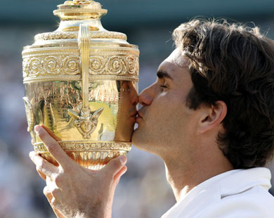 ولكن ست سنوات بعد ذلك، جثا فيدرر على ركبتيه على أرضية ويمبلدون، بعد أن حقق حلم الطفولة.