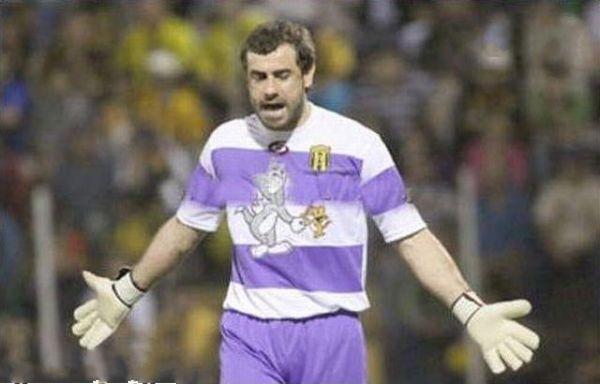 أغرب حارس مرمى في العالم ، غرابته جاءت من ملابسة الغريبة التي يرتديها في كل مباراة