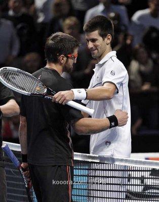 وكان جوكوفيتش بحاجة إلى فوز فيرير في المباراة أمام بيرديتش كي يتأهل من المركز الثاني في المجموعة الأولى ، لكن اللاعب التشيكي حقق الفوز لينتزع بطاقة التأهل مع فيرير.