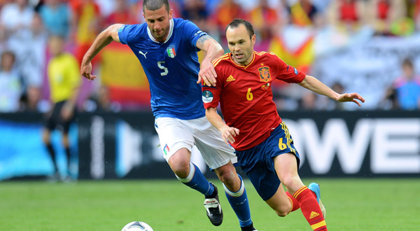 ونال المتألق إنييستا ركلة حرة مباشرة على حدود منطقة جزاء الطليان على تشيليني.