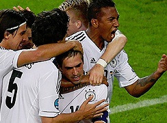 تأهل المنتخب الالمانى إلى الدور نصف النهائى لبطولة يورو 2012، وذلك بعد تحقيقه فوز كبير اليوم الجمعه على نظيرة اليونانى بأربعة اهداف مقابل هدفين، فى اللقاء الذى اقيم ضمن منافسات الدور ربع النهائى للبطولة.