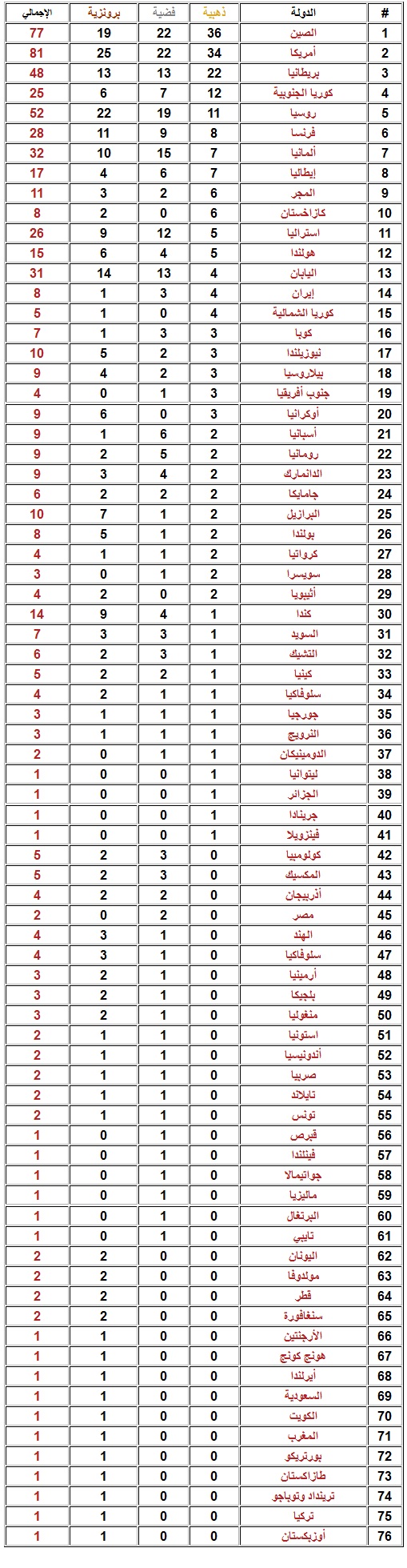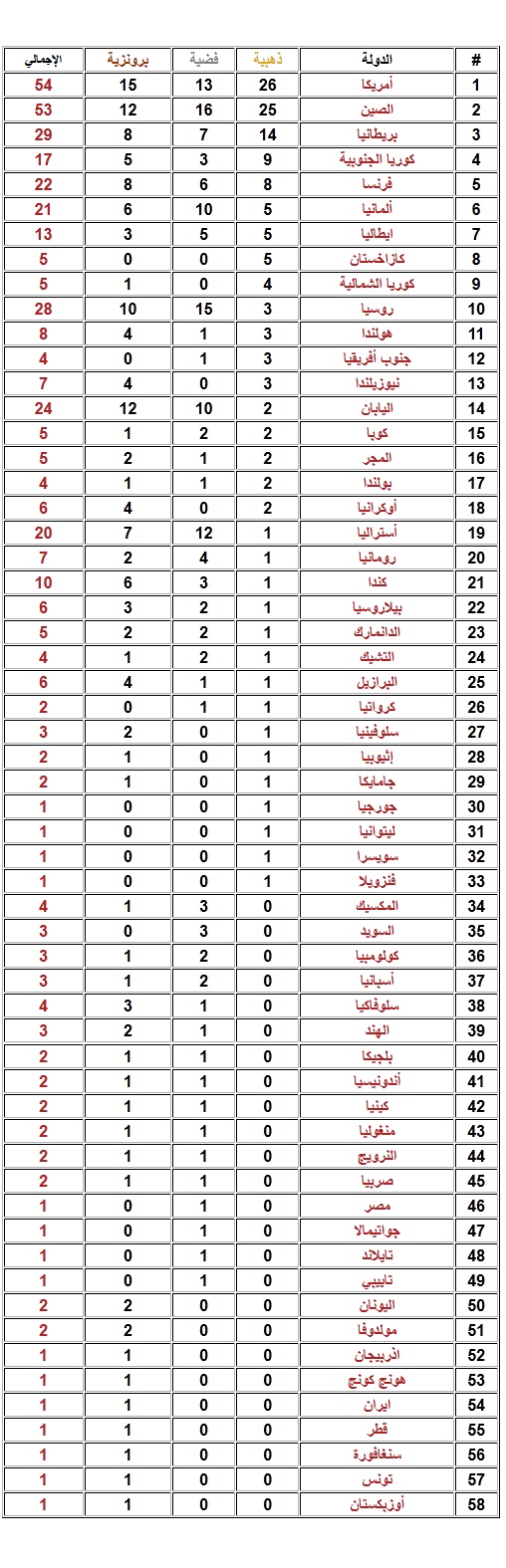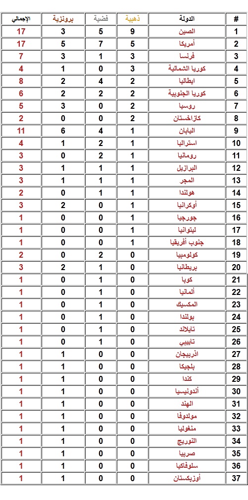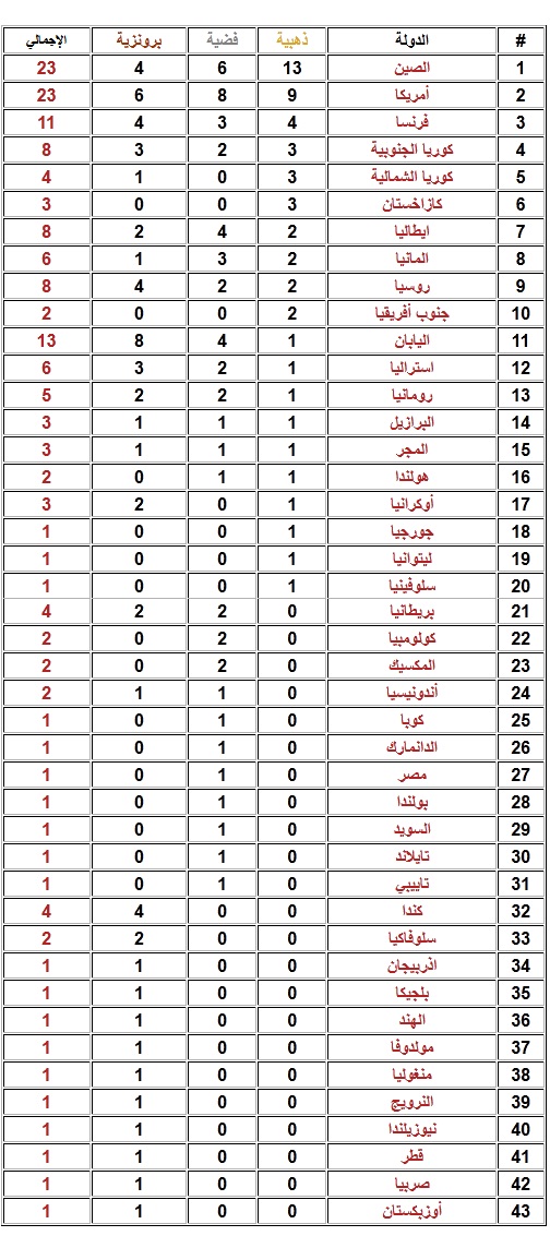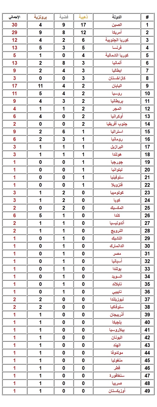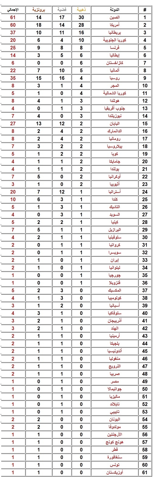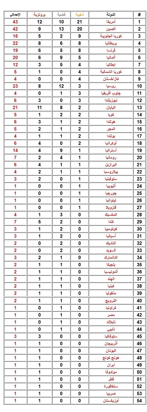 رد: ترتيب الدول الحائزة على ميداليات في أولمبياد لندن 2012