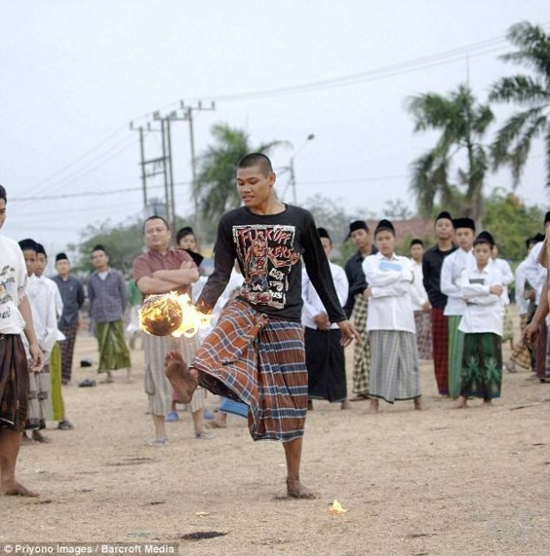 رد: من اندونيسيا : لعب كرة القدم بكرة من النار