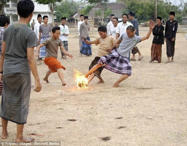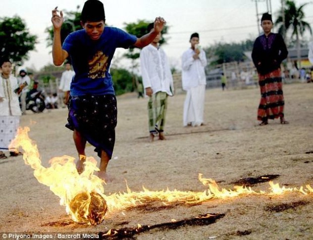 • من اندونيسيا : لعب كرة القدم بكرة من النار