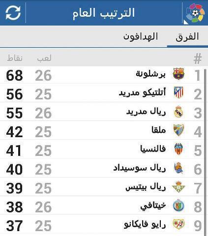 ويتصدر برشلونة جدول الدوري الأسباني بفارق 12 نقطة أمام أتلتيكو مدريد و16 نقطة أمام الريال صاحب المركز الثالث ، وهو ما يرشح برشلونة بقوة لاعتلاء منصة التتويج بالدوري هذا الموسم ، من وجهة النظر الواقعية.