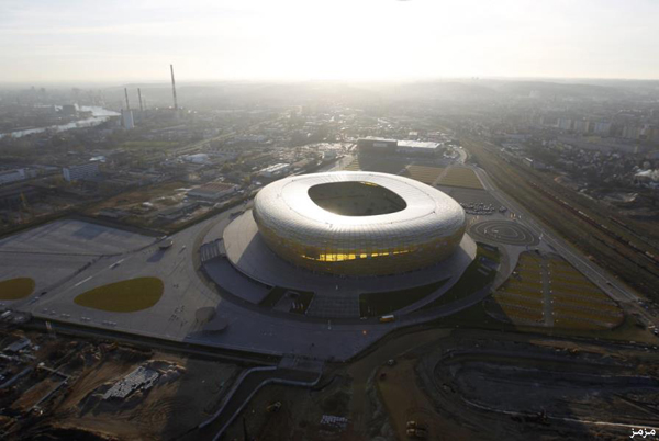 ملعب “نارودوي” في بولندا، وهو مصمم على شكل تاج، ويضم سقفاً قابل للطي في حال عدم استخدام الاستاد، كما أن مقاعده تبدو وكانها عائمة.