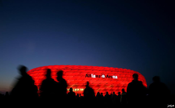 استاد “أليانز أرينا” بمدينة ميونخ الألمانية، والذي يتغير لونه بالتوافق مع ألوان قميص فريقه، حيث يتلون بالأحمر عند إستضافة فريق “بايرن ميونخ”، كما يتلون باللون الأزرق عندما يلعب النادي الثاني في المدينة ” ميونخ 1860 “.