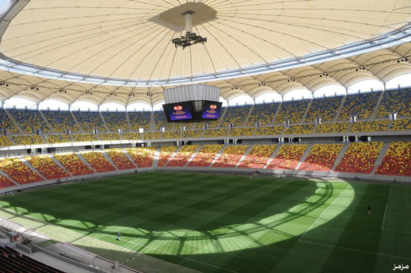 استاد “ناشونال أرينا” في رومانيا، ويتميز بالشاشة المعلقة أعلى الملعب المكشوف، والذي يمكن أن يتحول إلى صالة مغطاة للتكيف مع أحوال الطقس السيىء.