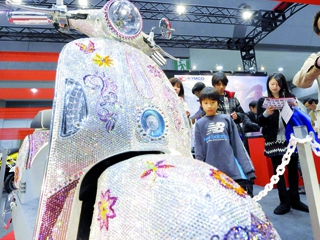 عرضت شركة “كيمكو” اليابانية دراجتها “ميتش” المرصعة بـ 100 ألف خرزة من الزجاج الشفّاف الكثيف والثمين المعروف باسم “كريستال سواروفسكي” يبلغ وزنها الإجمالي 100 كيلوجرام، وذلك ضمن فعاليات معرض طوكيو للدراجات النارية الذي افتتح يوم الجمعة الماضي 26 مارس وأغلق أبوابه الأحد 28 مارس. وكان من الطبيعي أن يتحلّق عدد كبير من الزوّار حول هذه التحفة الجديدة للتمعّن في الطريقة المعقدة وذات الدقة البالغة التي نفذت بموجبها الفكرة.