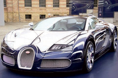 صورة التقطت لسيارة بوجاتي فيرون المسماة بـ «الذهب الأبيض» عرضت في برلين باعتبارها أغلى سيارة في العالم حيث يبلغ سعرها 2.320.317.77 دولار، وهذه السيارة الفارهة تم تصنيعها بالتعاون مع شركة كي. بي.إم. ونيجليش بورزيلان. الفرنسية